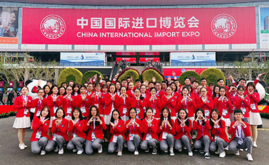 2018年11月第一屆中國國際進口博覽會,一套紅色志愿者服裝尤為引人注目。五星造型中式領口點綴四葉草紐扣別致新穎,中國紅上裝搭配灰、白色褲裙明快鮮亮,筆挺的西服、靈動的裙擺、精致的工藝,彰顯著志愿者的專業、熱情、與活潑。而這些,正是由上服智源成衣為志愿者量身打造的。